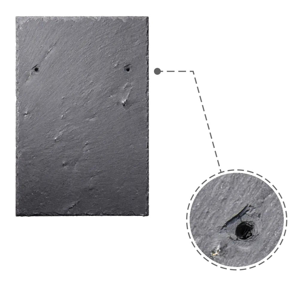 Natural surface roofing slate tiles 300 x200 mm with natural rough chipped edges. with 2nail holes Dia 4 mm. (Customized size and thickness available)