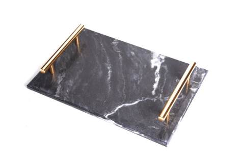 Cloud White Marble Serving Tray With Rose Gold Handles